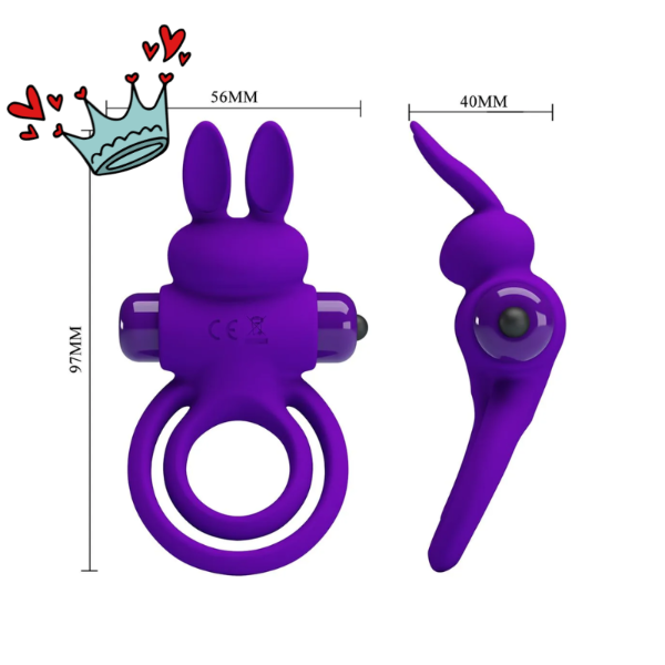El anillo ajustable rodea la base del pene manteniendo la erección firme y duradera, mientras su estimulador con forma de conejito vibra contra el clítoris con una energía precisa y constante.