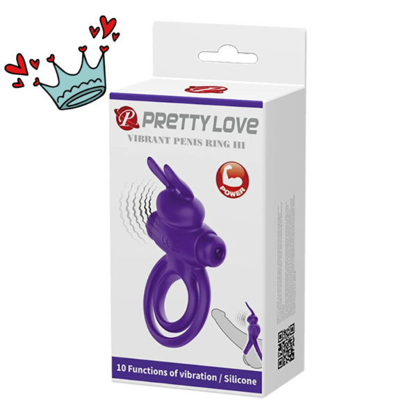 Una invitación al placer compartido. El Pretty Love Vibrant Penis Ring III combina diseño anatómico, textura sedosa y vibraciones potentes para intensificar cada movimiento.